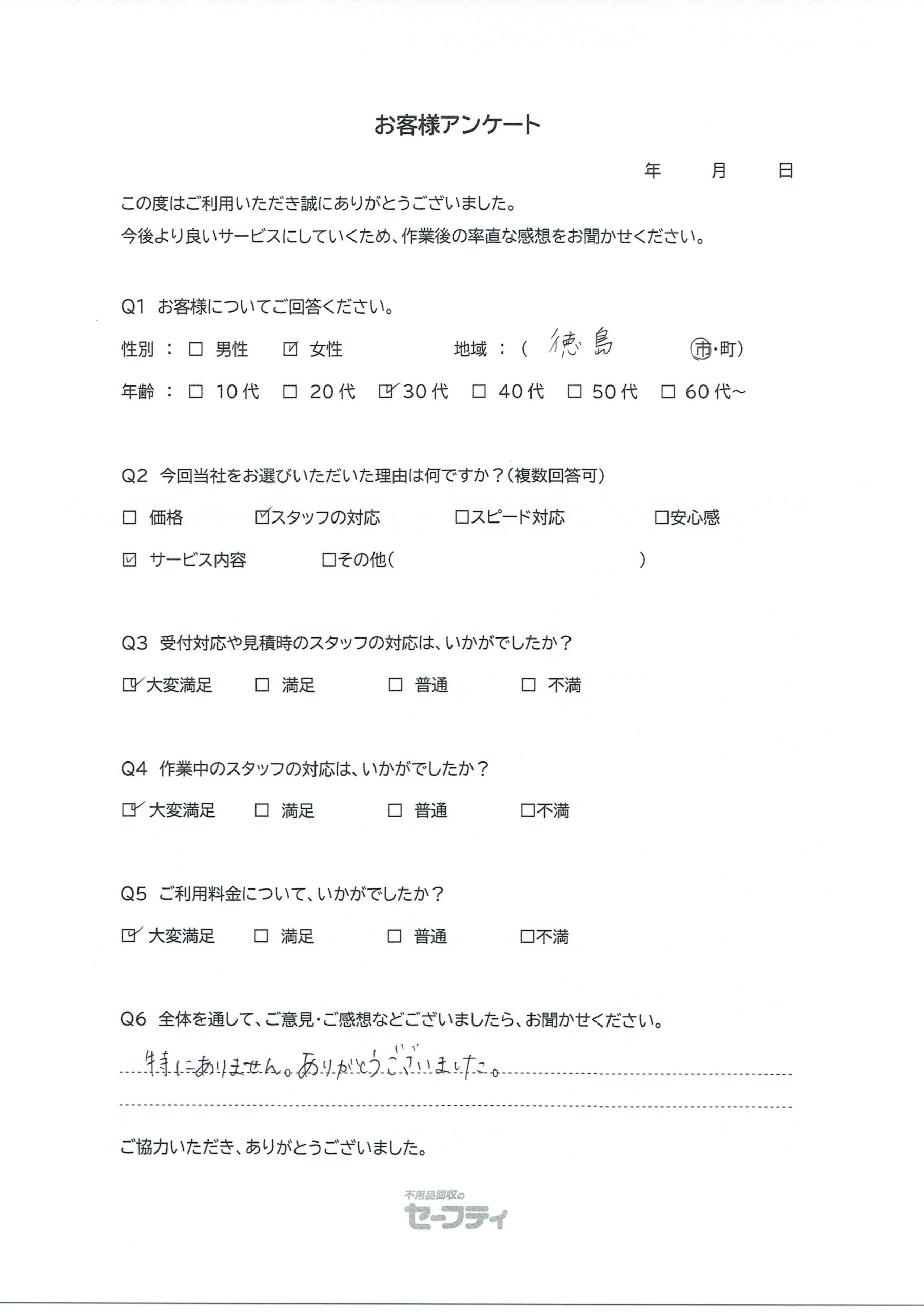 徳島市Kさま(不用品回収ご利用のお客様アンケート)